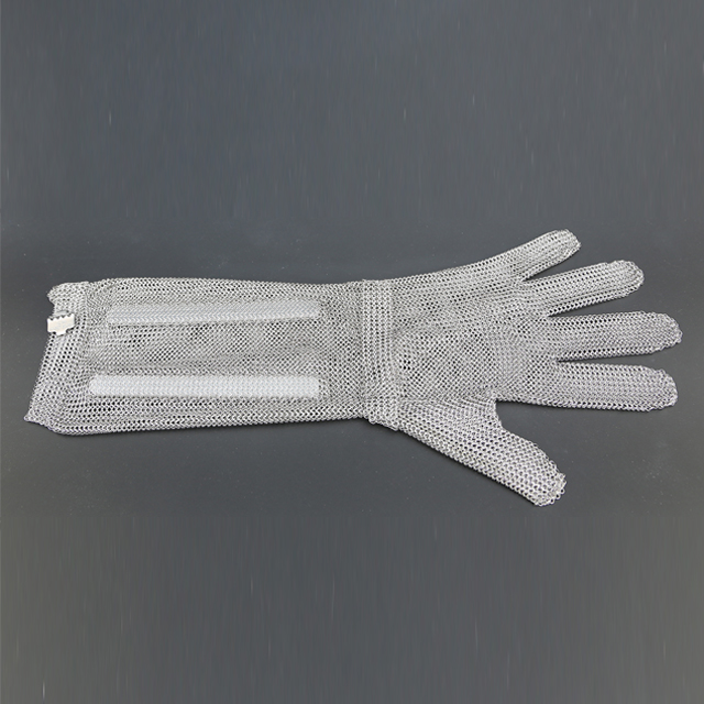 ![]() | Product Name: Five fingers ring mesh glove with extended cuff Wire Materials: stainless steel wire 304 Ring inner Diameter: 2.75mm Wire Diameter: 0.53mm Cuff Length: 8cm, 15cm, 19cm, 20cm Size: XXS, XS, S, M, L, XL Applicaation of the ring mesh gloves: Used for hand protection during meat processing, leather processing glass processing, wood carving and vegentable and fruit cutting. |