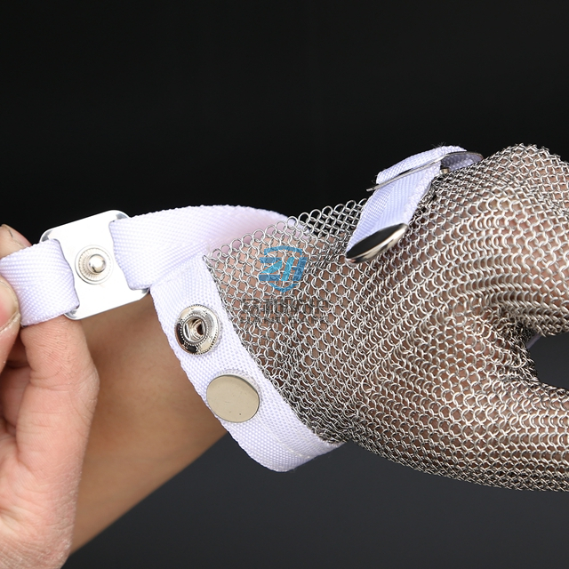 The difference between Textile Strap, Metal Hook Strap and EVA Strap of metal mesh butcher gloves