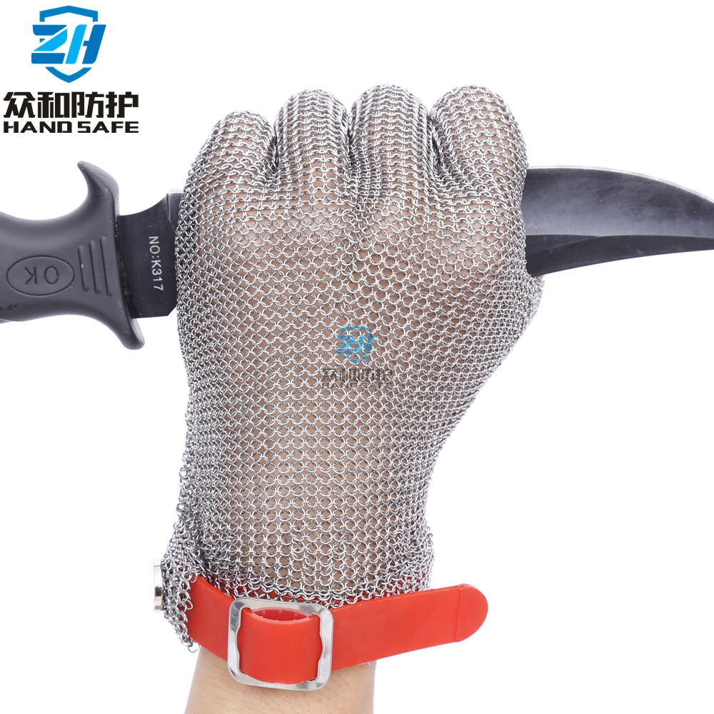There is a wide application of Five Finger Plastic Strap Metal Mesh Glove: